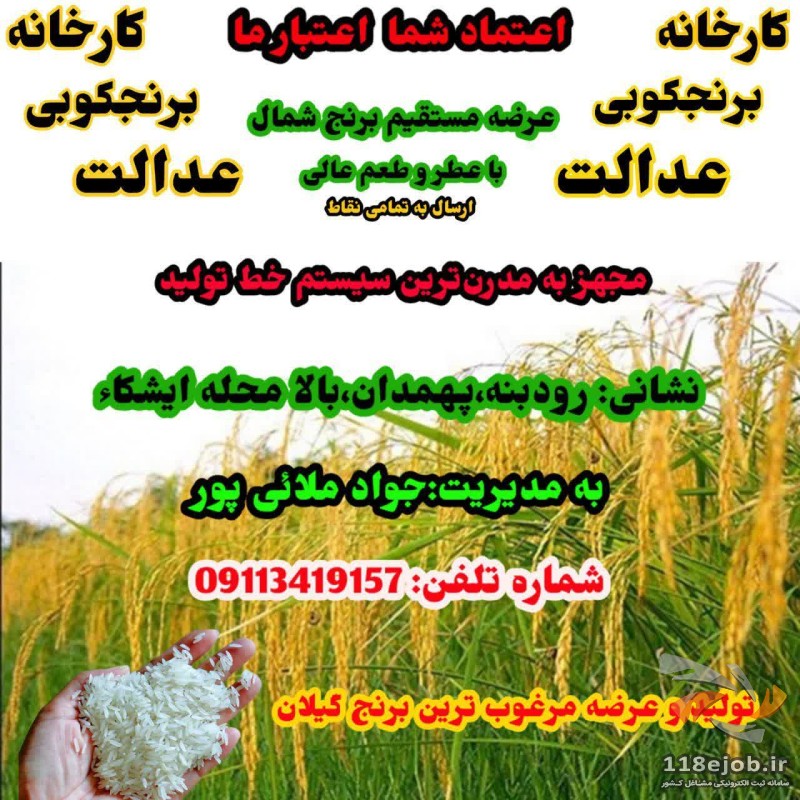 کارخانه برنجکوبی عدالت: تولید و فروش برنج مرغوب ایرانی با کیفیت بینالمللی